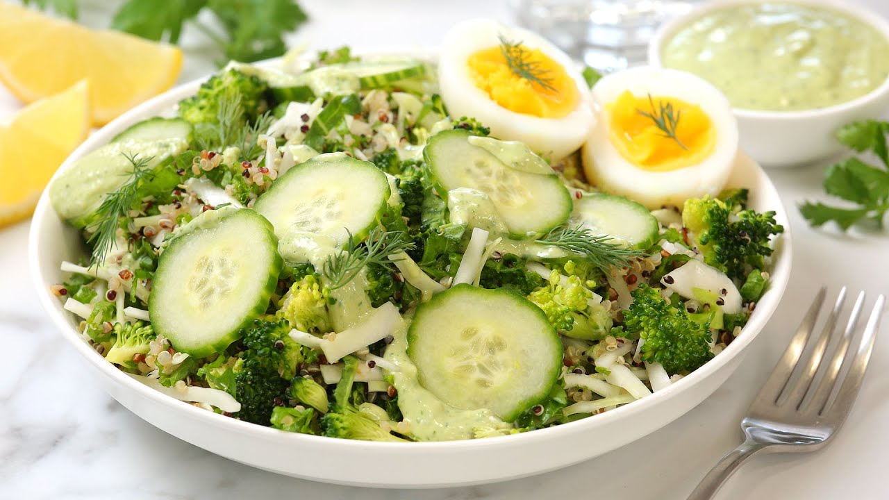 Green Goddess Salad Recipe. This incredible Green Goddess Salad is absolutely delicious and loaded with nutritious and protein packed ingredients! It starts with an irresistible herbaceous green goddess dressing that is super easy to customize. The dressing tops a bed of quinoa, broccoli, cabbage, and kale! Enjoy!
